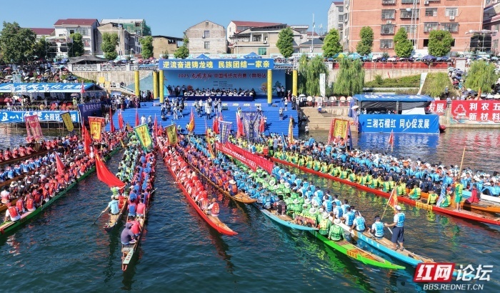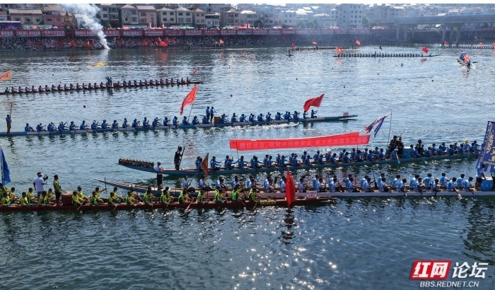 湖南麻阳锦江河迎来传统龙舟赛,24支队伍同场竞技