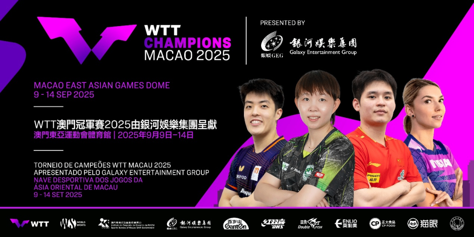 WTT澳门冠军赛将于9月9日至14日举行
